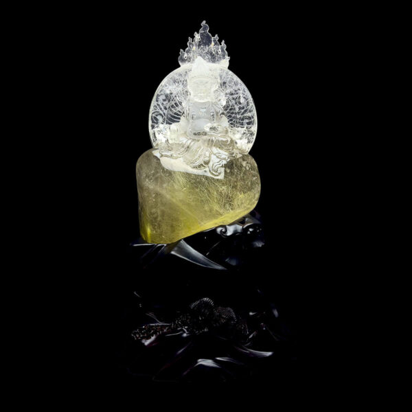 Mặt điêu khắc: Hoàng Thần Tài (Hoàng Tài Bảo Thiên). Tác phầm được Nghệ Nhân lâu năm chạm khắc công phú chi tiết, tỉ mỉ.