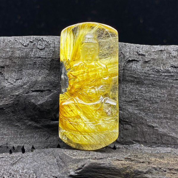 Mặt Như Lai Đại Nhật - Thạch Anh Tóc Vàng #MTVD0017 3Thạch anh tóc vàng được chế tác làm trang sức mặt dây chuyền