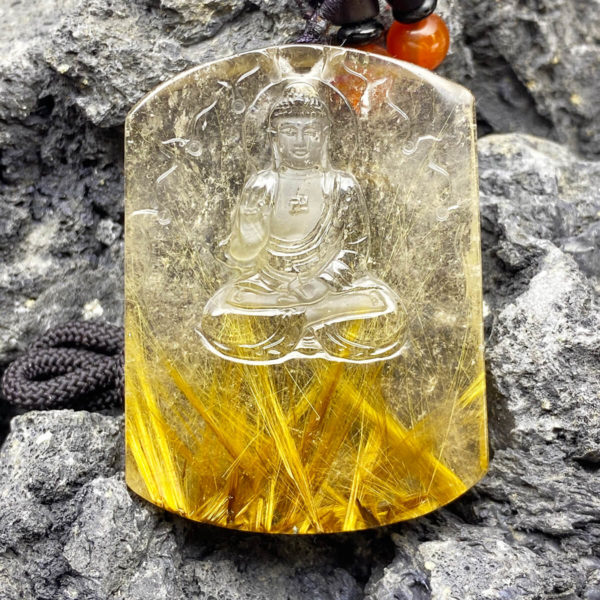 Thạch anh tóc vàng được chế tác làm trang sức mặt dây chuyềnTránh sự cả tin mềm lòng – kích hoạt may mắn tài lộc